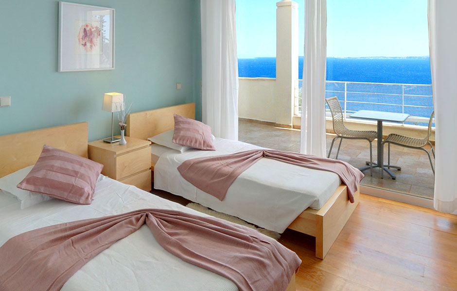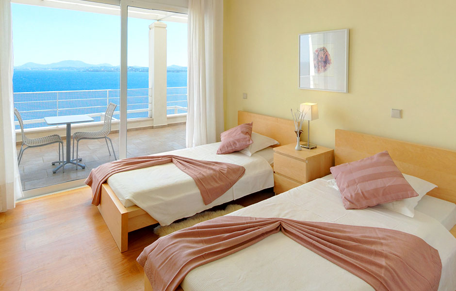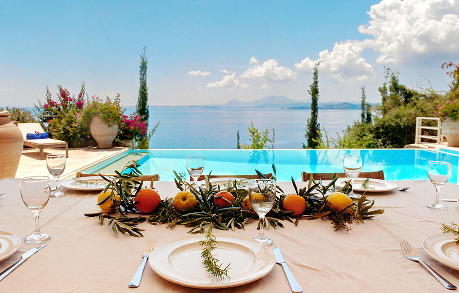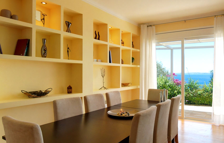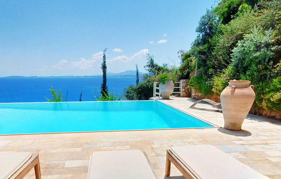 The villa is built on a slope, thus offering breathtaking views of the sea and the mainland as far as Corfu town.