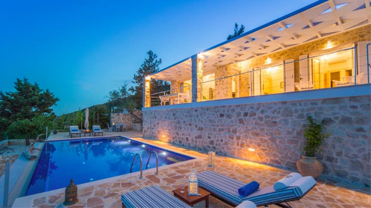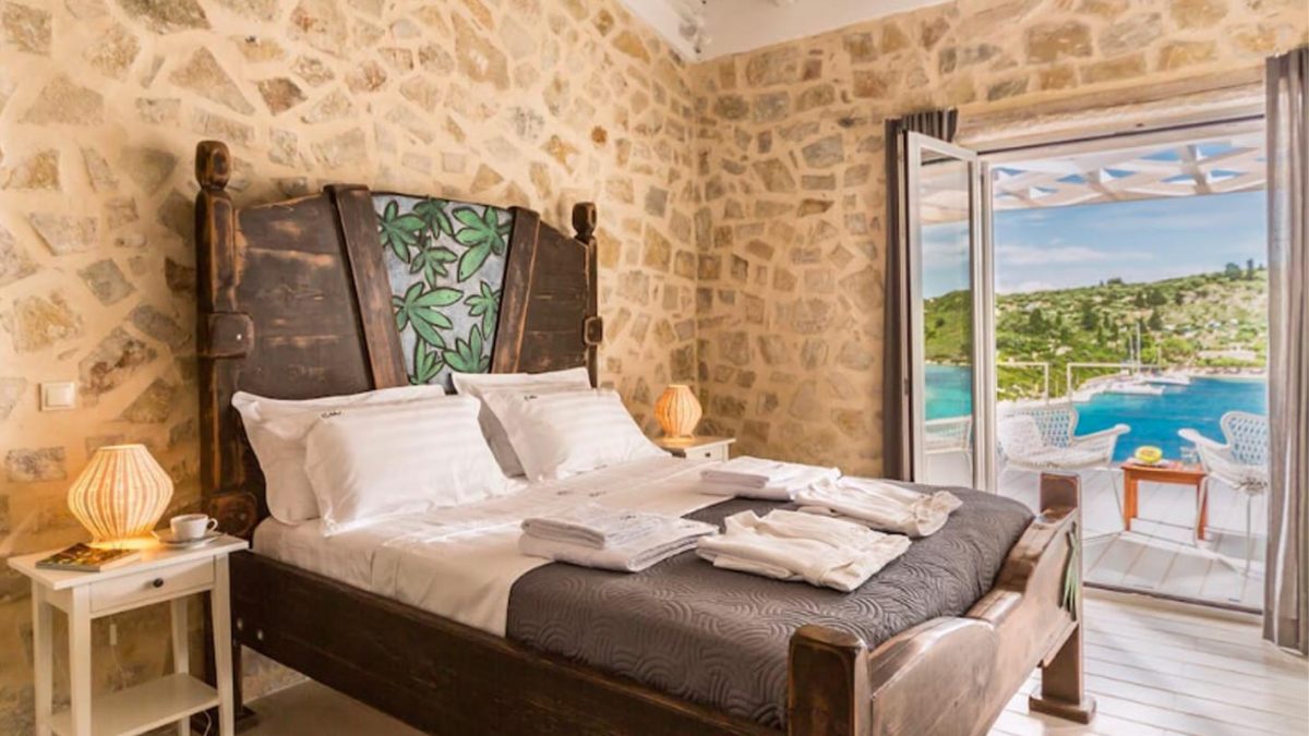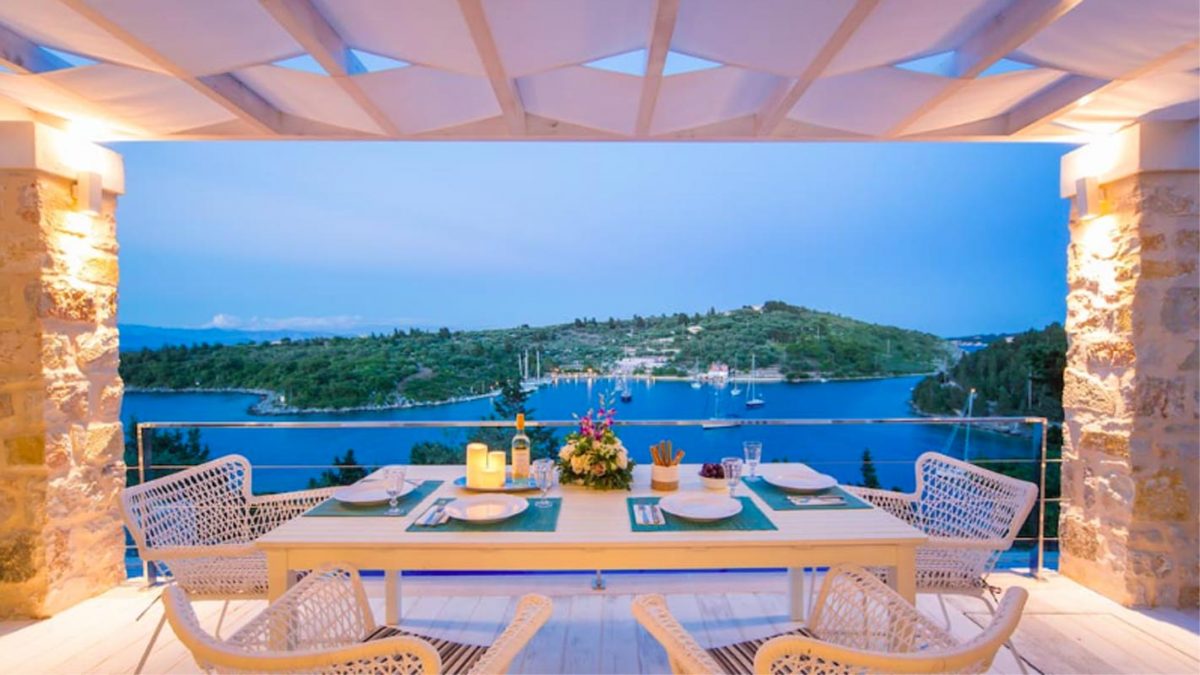 Villa Mongonissi has been recently renovated and converted into a luxury modern stone Villa with 2 bedrooms, 2 bathrooms, a living area, a fully equipped kitchen, and a well-sized balcony opening up to one of the best views of the Ionian -spacing from the light hues of the open sea to the luscious greens of the Mongonissi island,finishing off to the deeper blues of the channel leading to Antipaxos.
